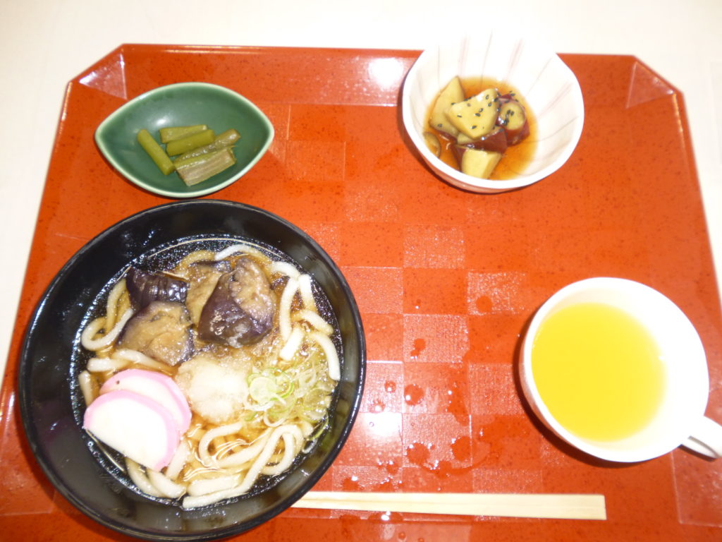 ショートステイ杏 ある日の昼食 2025年8月19日 writer 本日の昼食 ・揚げ茄子とおろしのうどん 夏が旬の茄子に大根おろしを添え あっさりした温かいうどんです。 ・大学芋 甘辛のタレでコーティングしました。 ・みずの浅漬け ・オレンジジュース 3