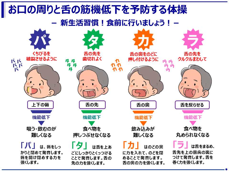 お家に帰られる方には特に、ここで食事前に行っている体操を